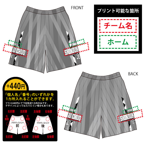 +440円で「個人名」「番号」のいずれかを1カ所入れる事も出来ます。※デザインによっては入りにくい場合もあります