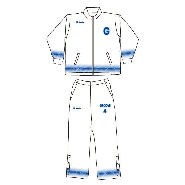 チーム名や個人別番号、ネーム等のマークが昇華で入り、ジャケットは3箇所、パンツは2箇所無料!